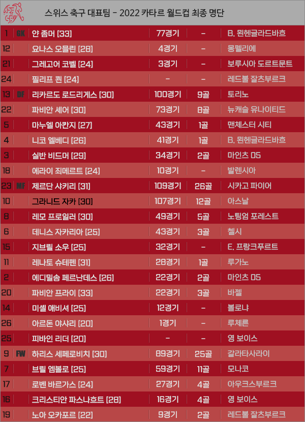 [피파] 스위스 - 2022 카타르 월드컵 최종명단