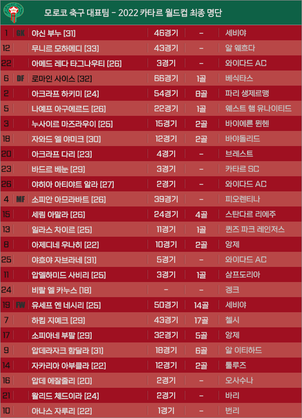 [피파] 모로코 - 2022 카타르 월드컵 최종명단