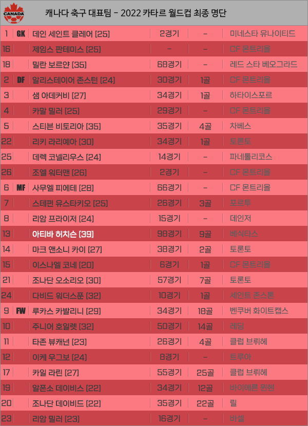 [피파] 캐나다 - 2022 카타르 월드컵 최종명단