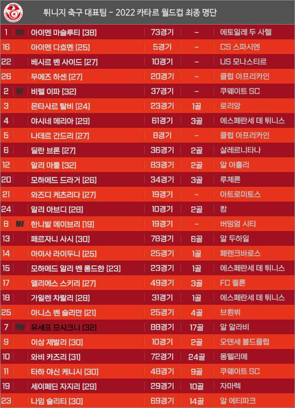[피파] 튀니지 - 2022 카타르 월드컵 최종명단