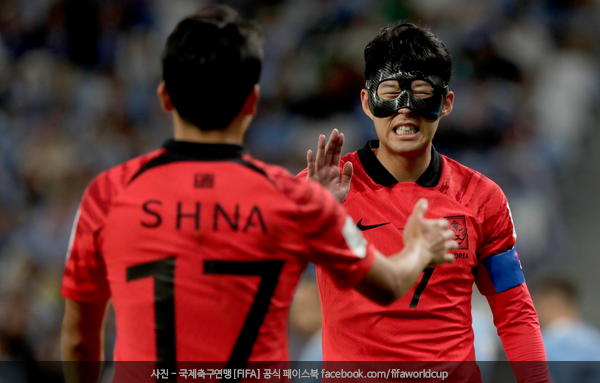 [팀캐스트=풋볼섹션] 파울루 벤투 감독이 이끄는 대한민국이 카타르 월드컵 첫 상대인 우루과이와 승부를 가리지 못하고 비겼다. '주장' 손흥민은 마스크를 착용하고 선발 출전했다.