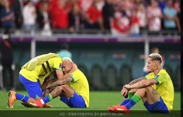 브라질은 10일[한국시간] 카타르 알 라이얀에 위치한 에듀케이션 시티 스타디움에서 치러진 2022 FIFA 월드컵 8강전에서 크로아티아와 승부차기까지 가는 질긴 승부 끝에 패배의 눈물을 흘렸다. 연장전에서 크로아티아와 한 골씩 주고받으며 1-1로 비긴 뒤 승부차기에서 2-4로 졌다.