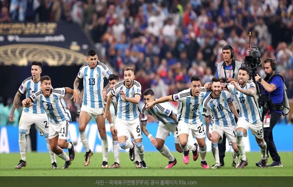 아르헨티나는 19일[한국시간] 카타르 루사일 스타디움에서 열린 2022 FIFA 월드컵 결승전에서 프랑스와 3-3으로 비긴 뒤 승부차기에서 값진 승리를 거뒀다. 승부차기에서 키커 전원이 득점한 아르헨티나는 4-2로 프랑스를 제압하고 36년 만에 월드컵 정상에 올랐다. 통산 세 번째 우승이다.